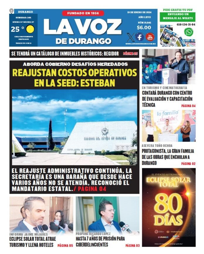 Portada La Voz de Durango 19 de enero de 2024