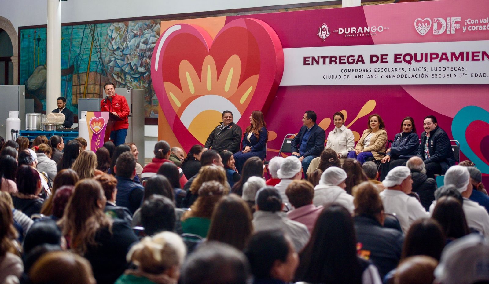 Con la entrega de comedores escolares y Centros de Asistencia Infantil Comunitarios (CAIC´S), equipamiento de la Ciudad del Anciano y Ludotecas, así como la remodelación de la Escuela de la Tercera Edad, el gobernador Esteban Villegas Villarreal y su esposa Marisol Rosso Rivera, reiteraron su respaldo a grupos vulnerables de la sociedad duranguense, como muestra de que el 2024 arranca con el pie derecho.