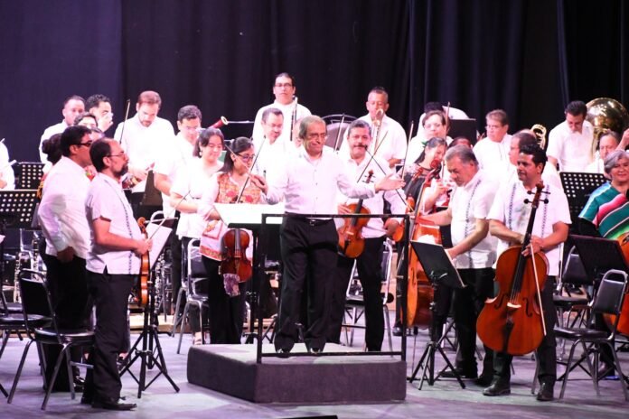 Fue el Teatro Ricardo Castro la sede que recibió a los más de 60 músicos que rompieron con la tradicional etiqueta de lujo al guardar el saco con corbata y los vestidos elegantes para ataviarse a la usanza mexicana con guayaberas diseñadas de bordados con grecas y detalles específicos, aunado a blusas multicolores alegres, adaptándose a un modo más versátil y de distinción con la intención de ejecutar las notas cómodamente, combinando frescura e identidad.