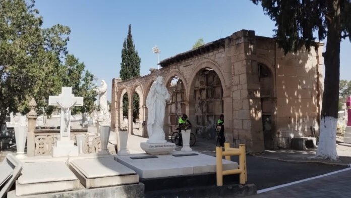 “Traemos un operativo ahí con los responsables de cada panteón municipal, estamos haciendo los recorridos , el retiro de enjambres de abejas, el acordonamiento de las fincas en riesgo que podamos ubicar o que sea visible para mitigar este riesgo que ahora con la romería próxima la gente acude de manera impresionante, principalmente al Panteón Oriente que es donde reforzamos la vigilancia no solamente ahí, sino en todos los panteones aquí cercanos, panteones también rurales donde estamos itinerantes recorriendo y también resguardando paramédicos, bomberos”, enfatizó.