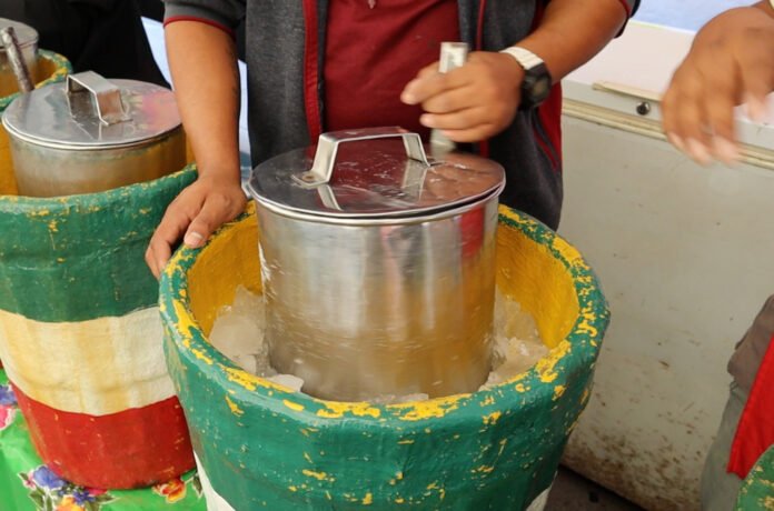 Juan Mendoza Castro, originario de Oaxaca pero ya con más de una década viviendo en Durango, elabora junto a su familia nieves 100% artesanales utilizando técnicas tradicionales como hielo, sal, frutas naturales y mucha dedicación.