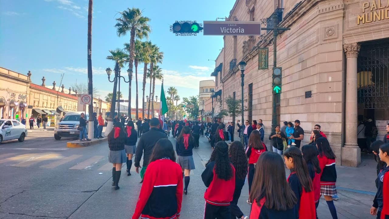 En la capital duranguense, contingentes de distintas escuelas recorrieron la avenida 20 de noviembre hasta la calle Pino Suárez, acompañados por militares, como parte del acto conmemorativo que busca fortalecer los valores de lealtad, disciplina y respeto a las instituciones entre las nuevas generaciones.